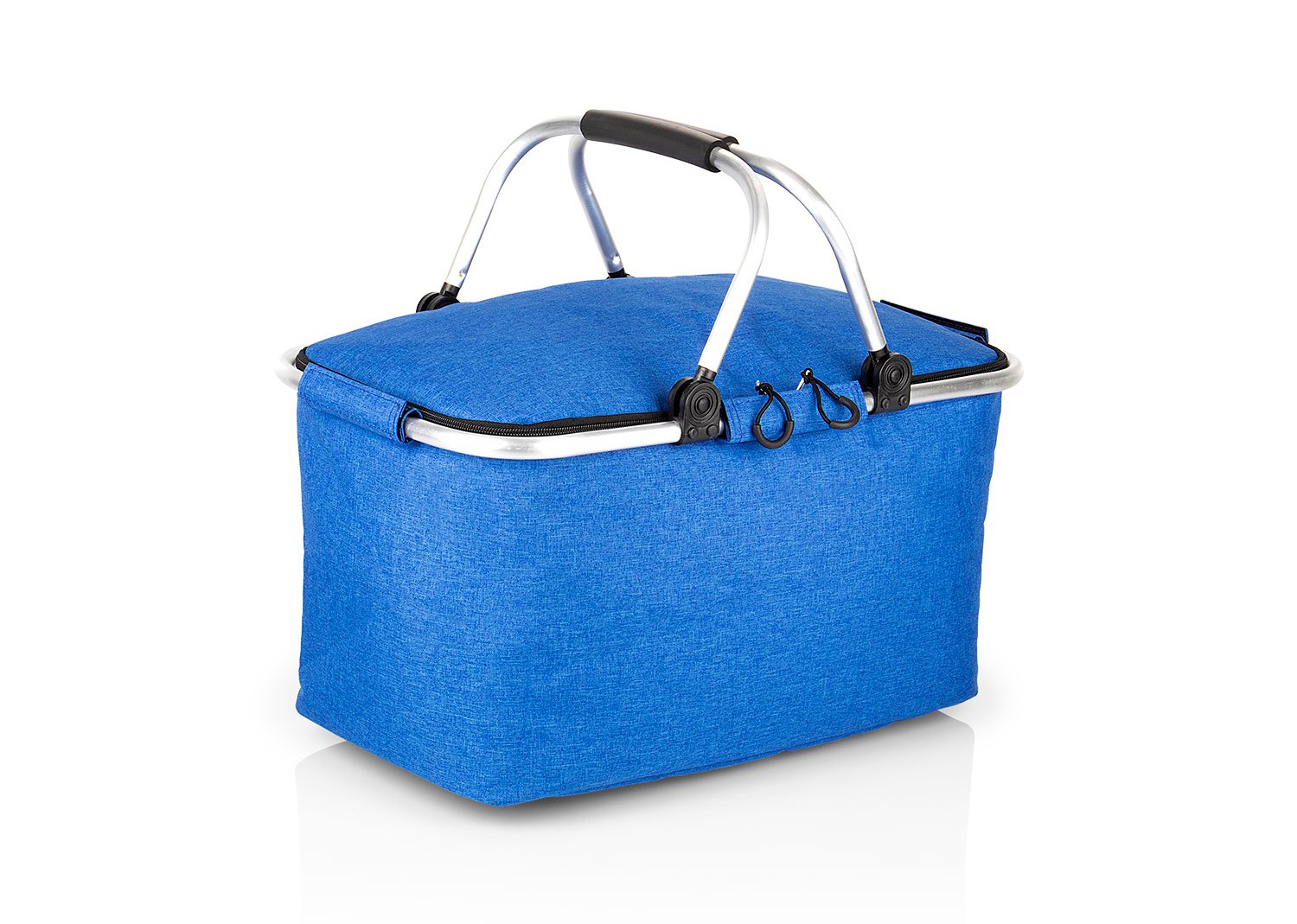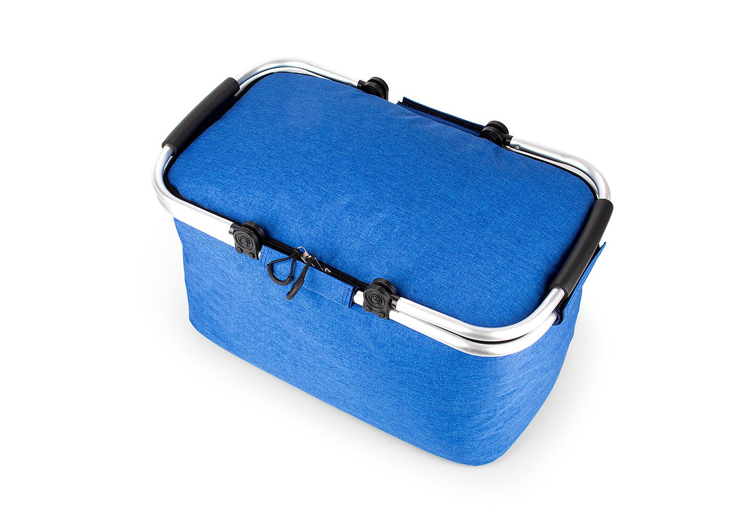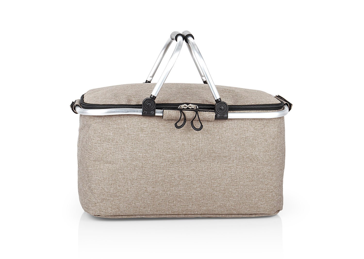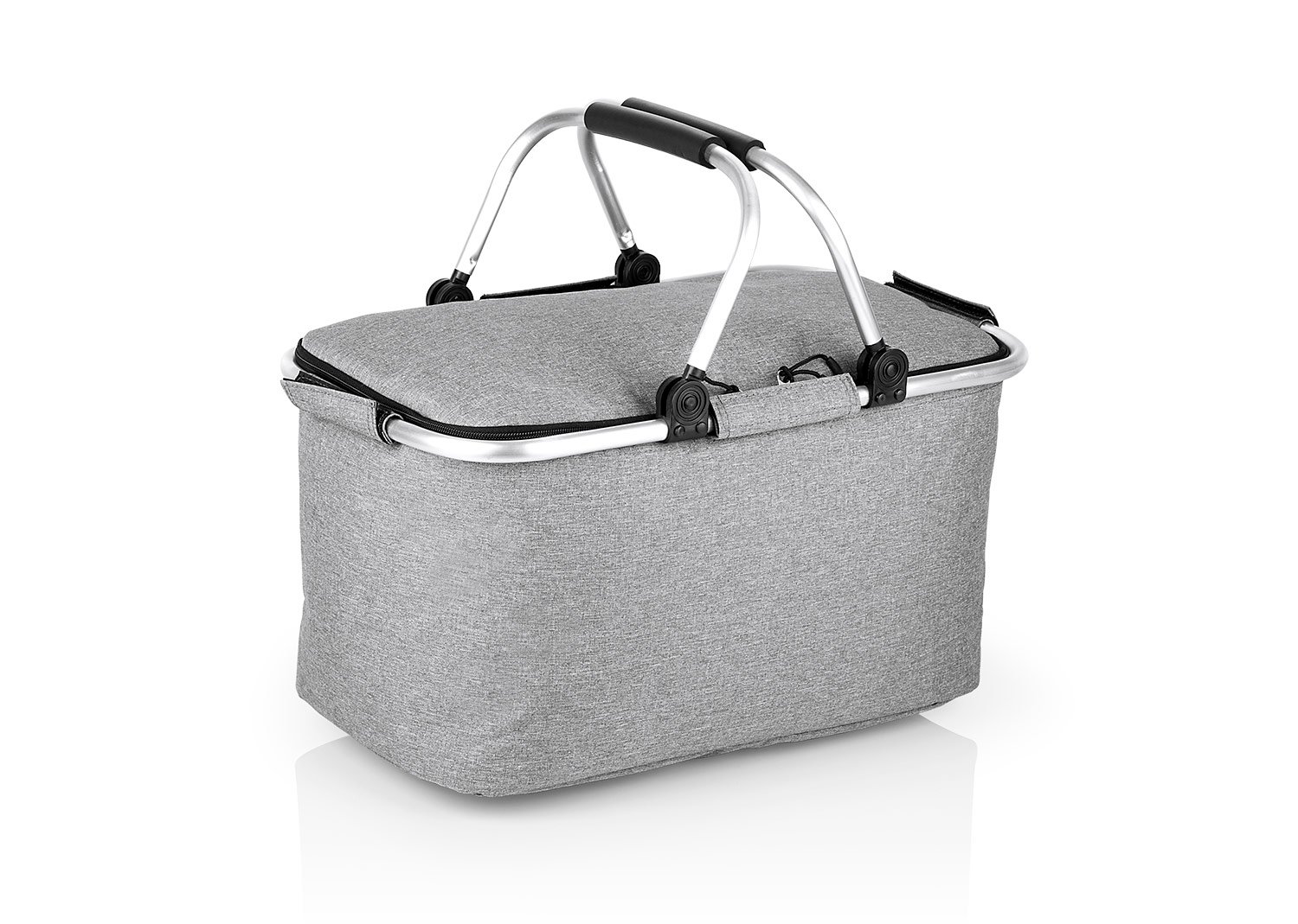 Cesta de picnic con agarraderas en aluminio, revestimiento en aluminio, diseño práctico.