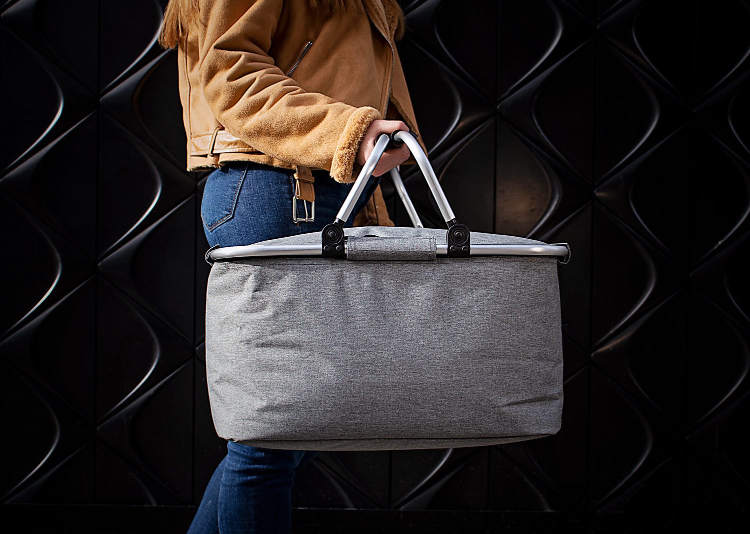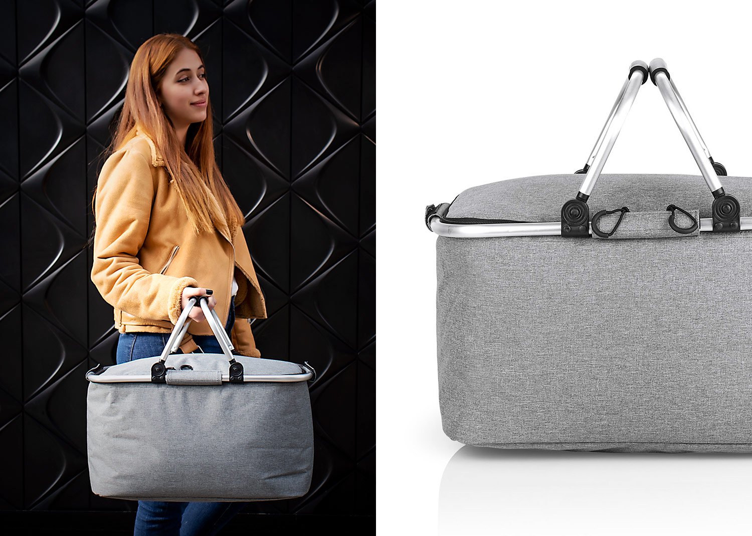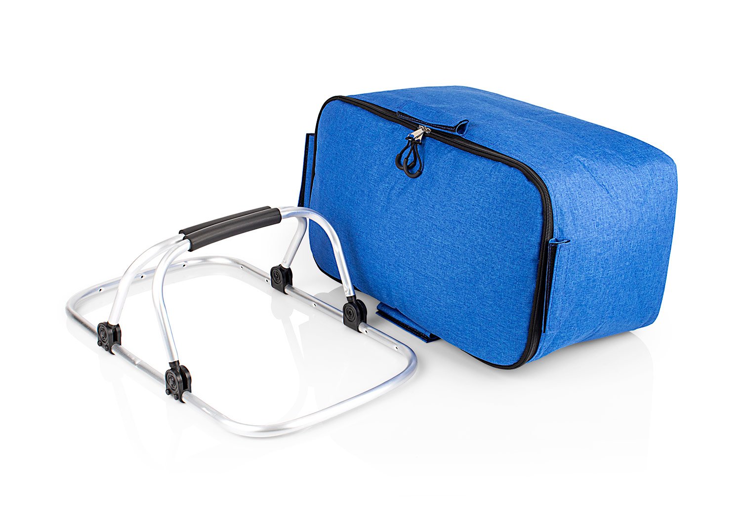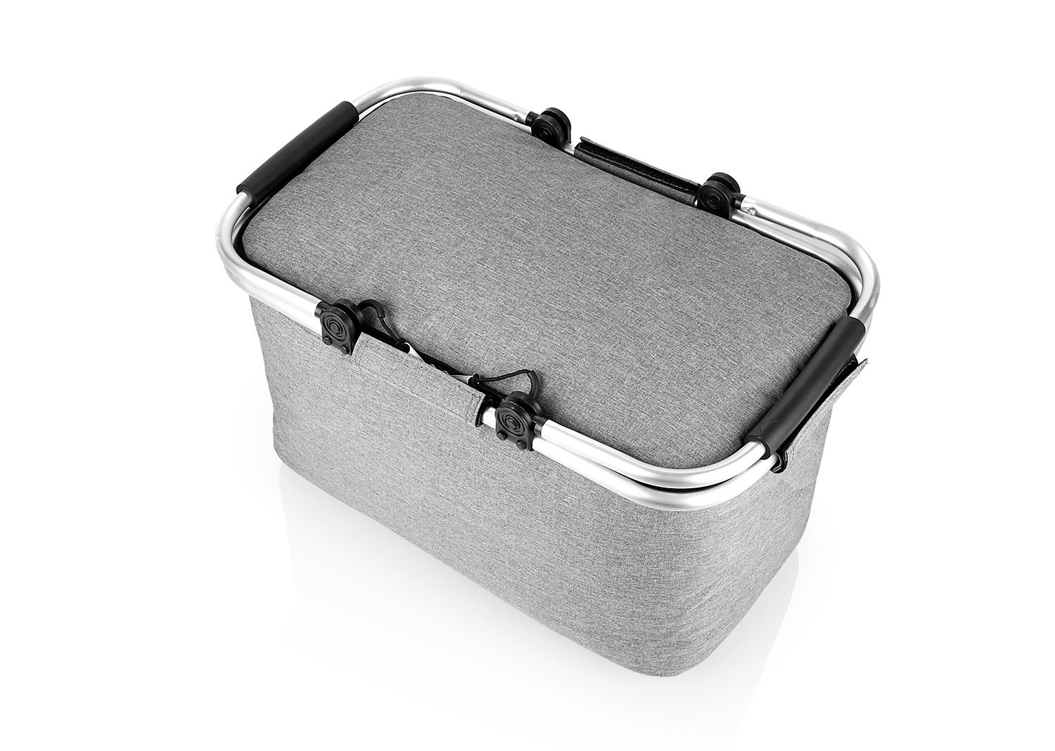 Cesta de picnic con agarraderas en aluminio, revestimiento en aluminio, diseño práctico.
