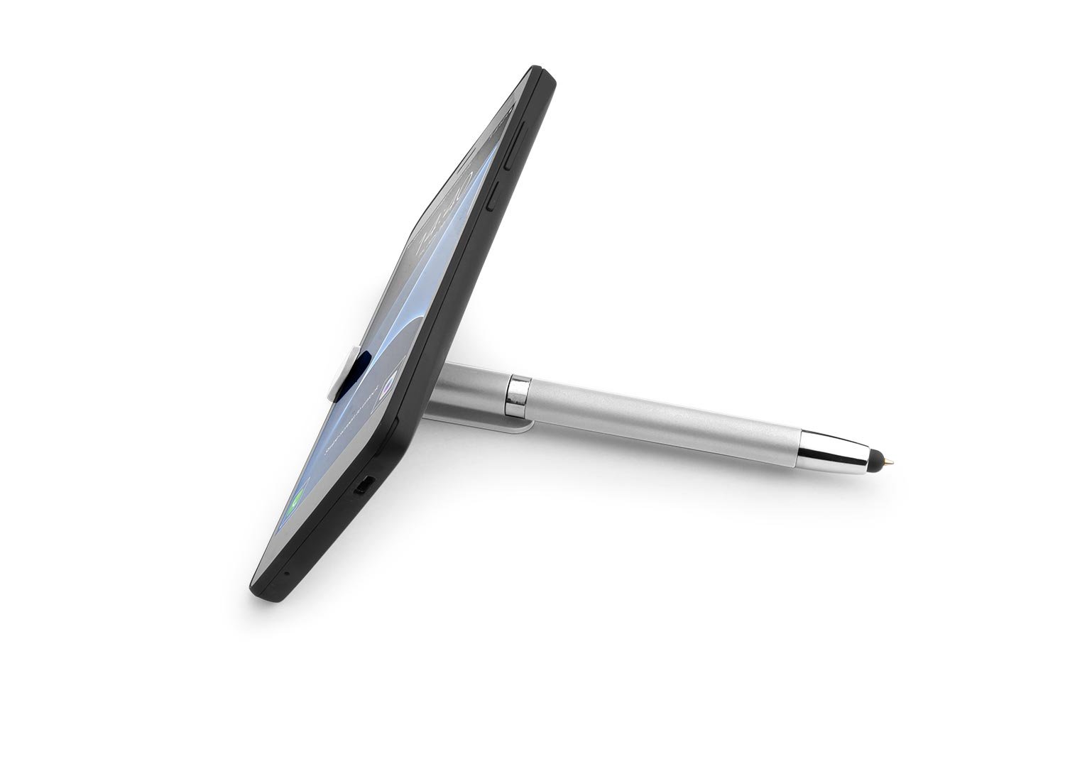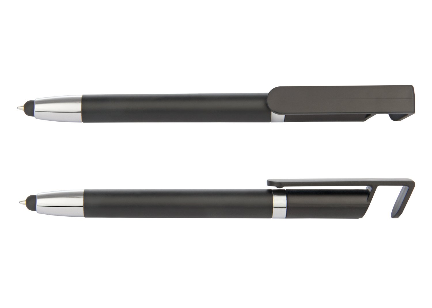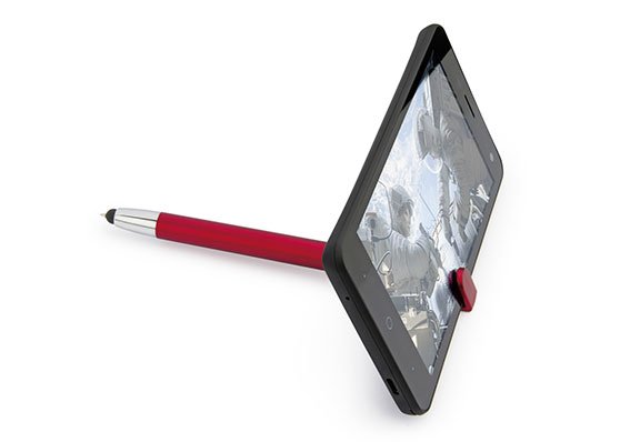 Bolígrafo plástico con acabado mate incluye holder y stylus para dispositivos de pantalla táctil. Sistema de apertura twist.