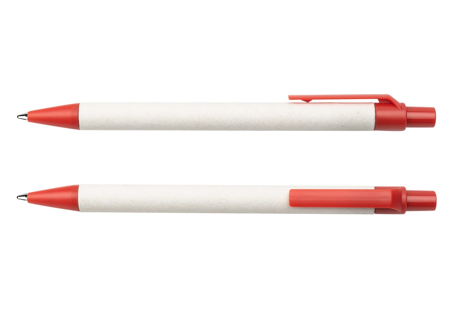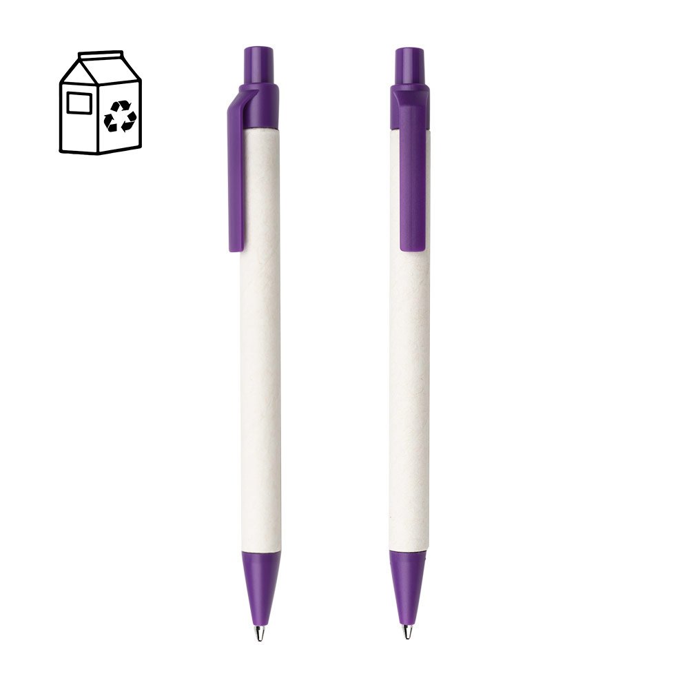 Bolígrafo elaborado en material recuperado de cajas Tetra Pak. Clip y punta plásticos. Sistema retráctil.