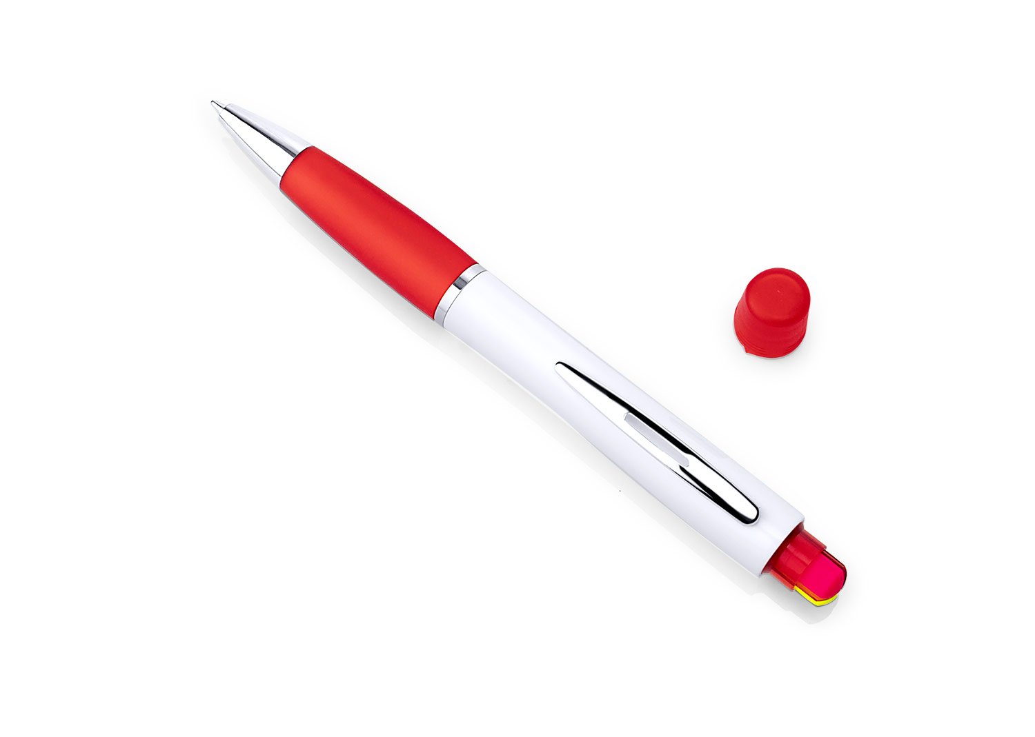 Bolígrafo plástico sistema twist y resaltador con tapa, Clip Metálico.