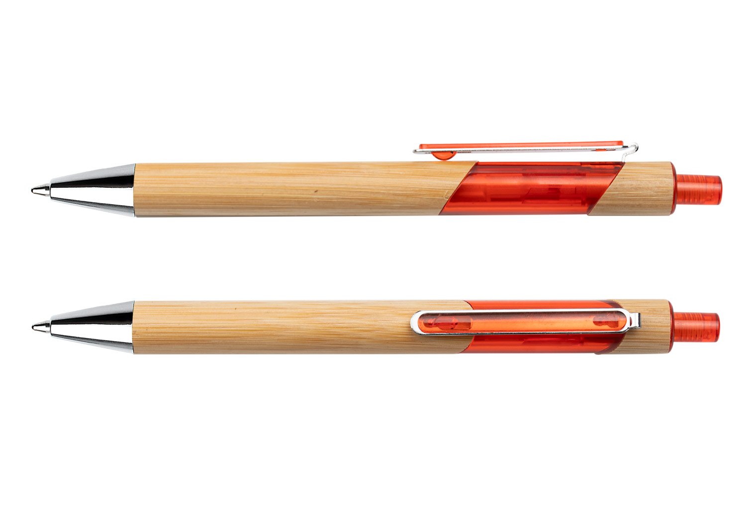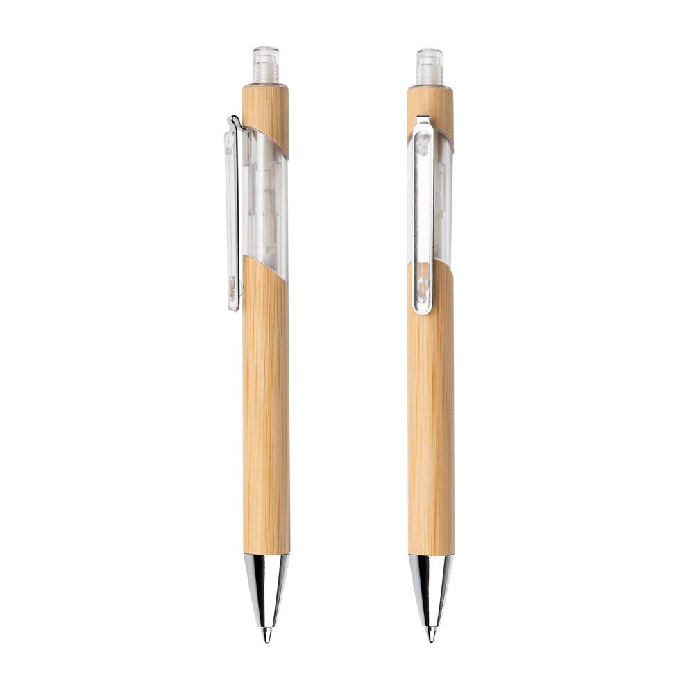 Bolígrafo ecológico de bambú con sistema de apertura retráctil gracias a la combinación con el plástico transparente su diseño es más llamativo.