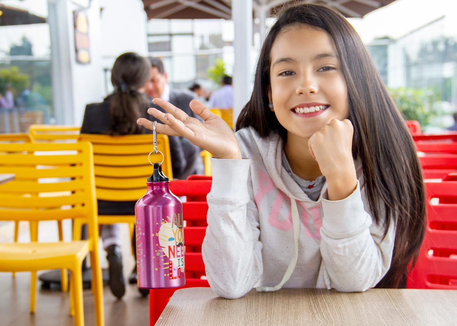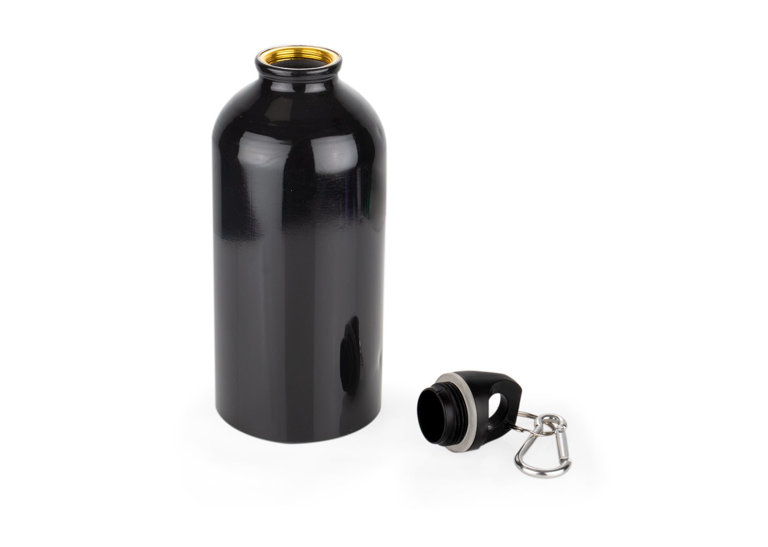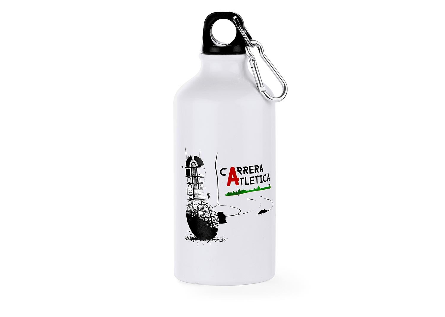 Botella de aluminio con gancho carabinero, tapa rosca. Libre de BPA u otras sustancias nocivas. No retiene ni transmite sabores. Pintura exterior atóxica. Capacidad 500 ml./ 17 Oz.