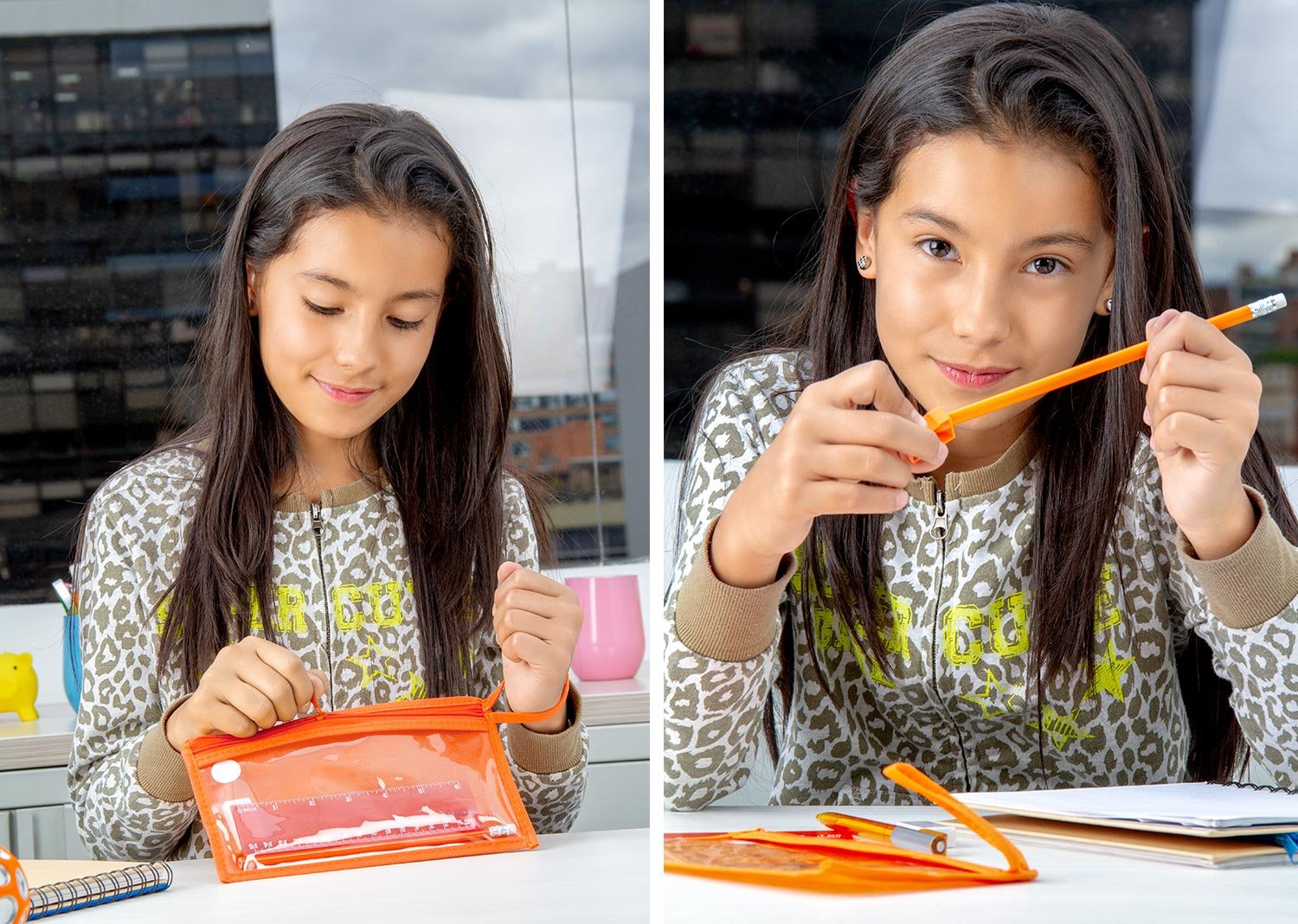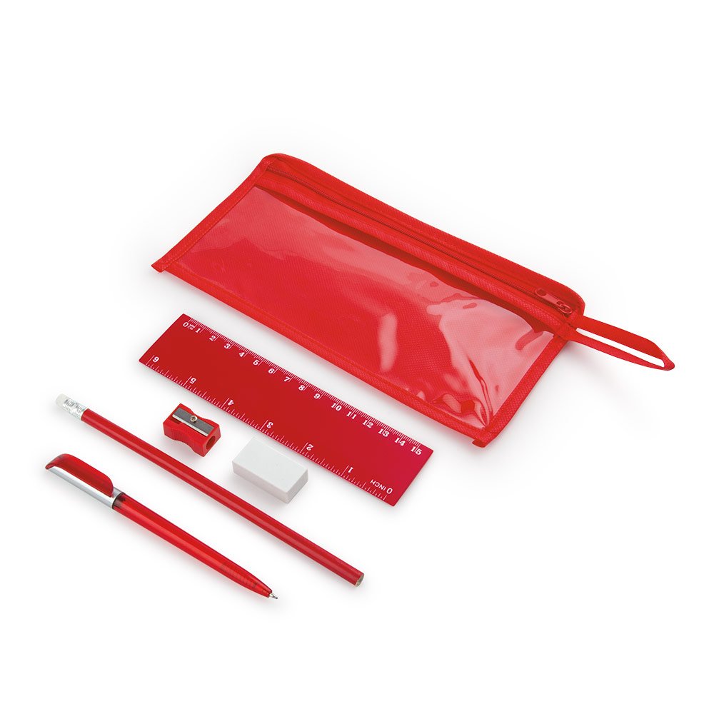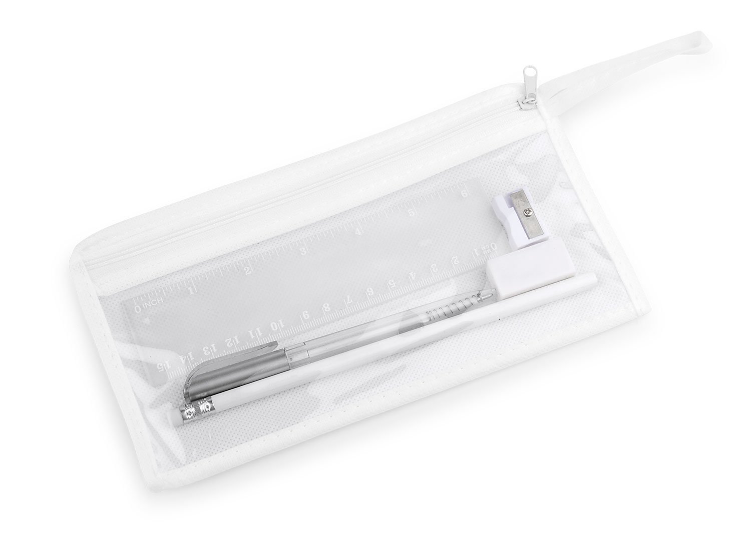 Cartuchera escolar. Incluye lápiz, bolígrafo, borrador, tajalápiz y regla de 15 cm.