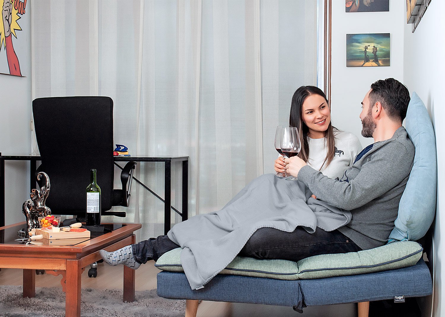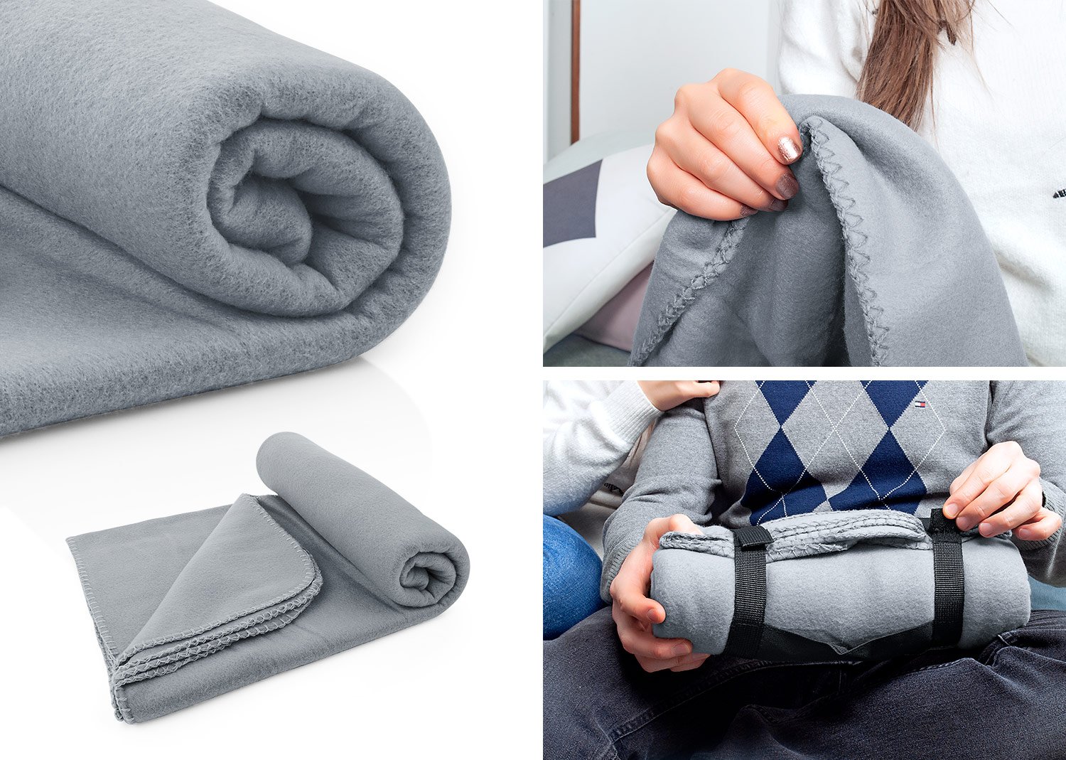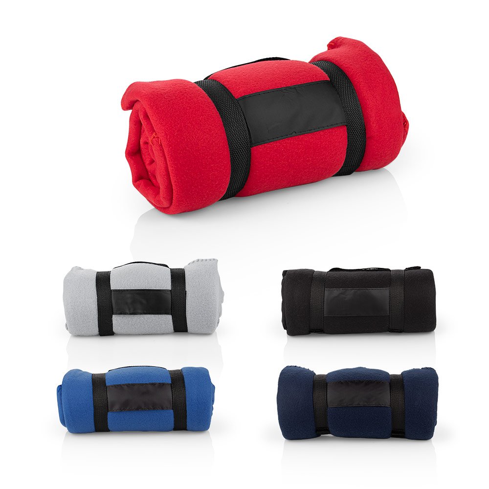 Manta viajera en lana suave con correa en nylon para ajuste y transporte, Peso: 180-180g, ideal para llevar en viajes.