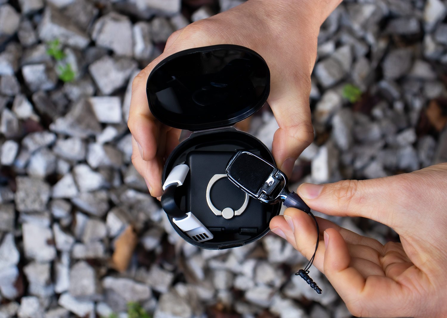 Estuche mediano para accesorios de móvil, ideal para proteger Audífonos o cables del dispositivo.
