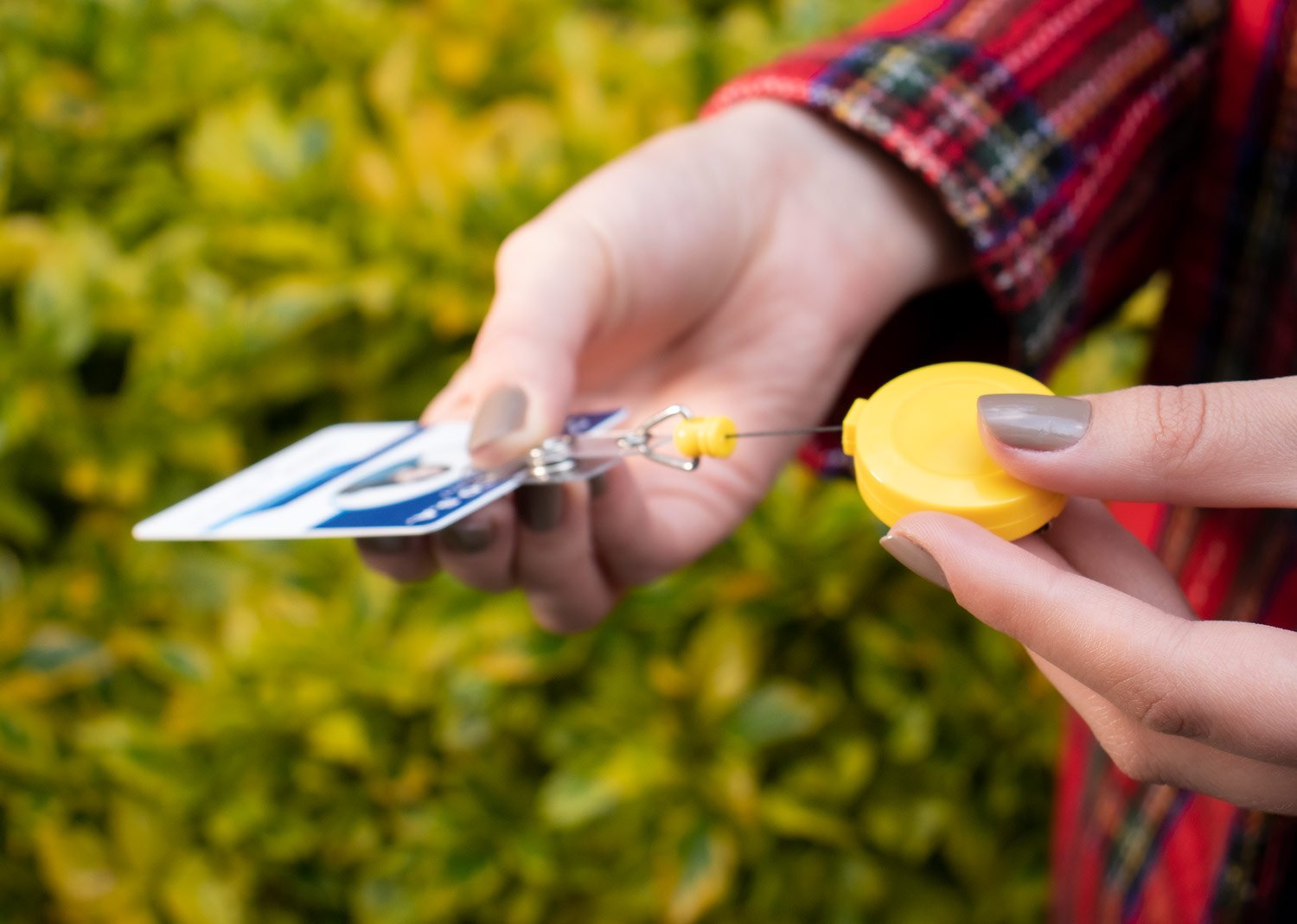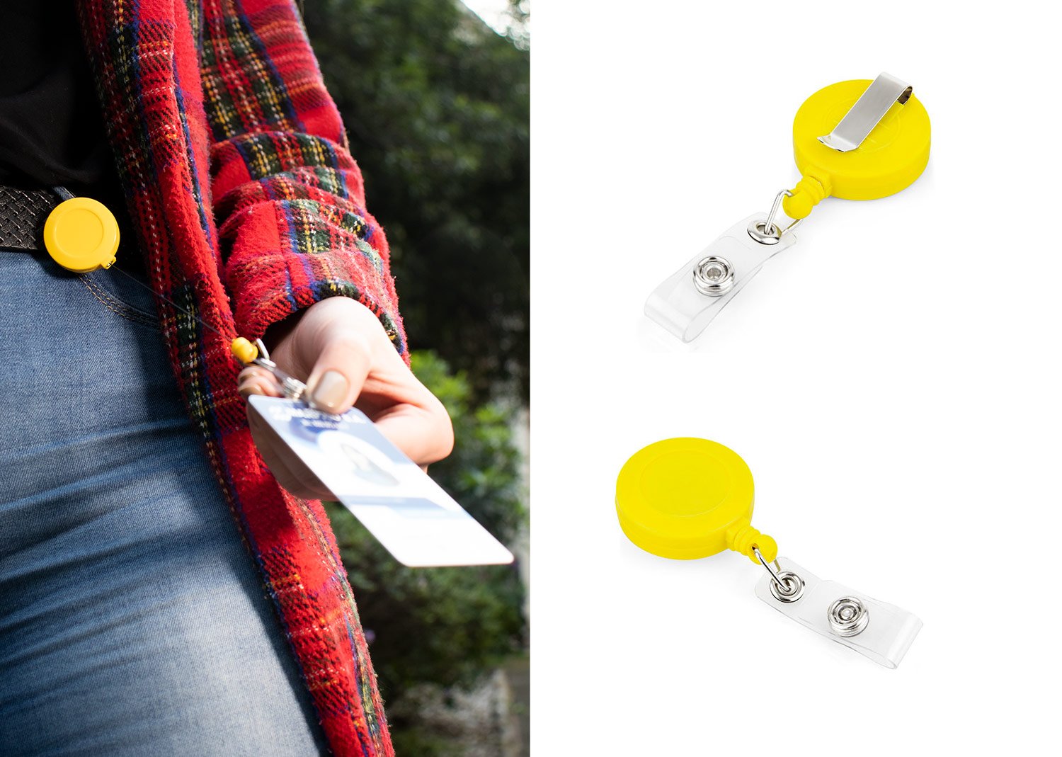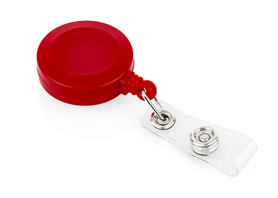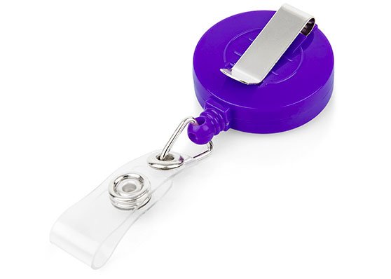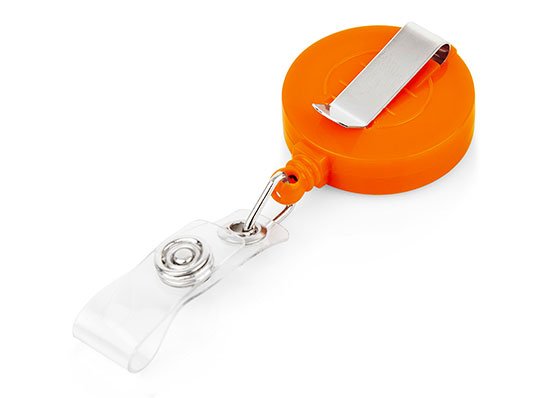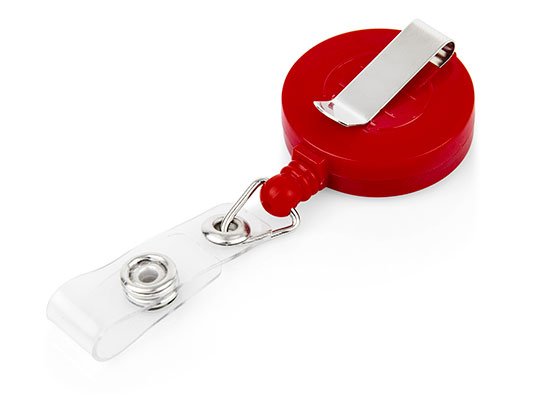 Portacarné con sistema retráctil y clip para bolsillo.