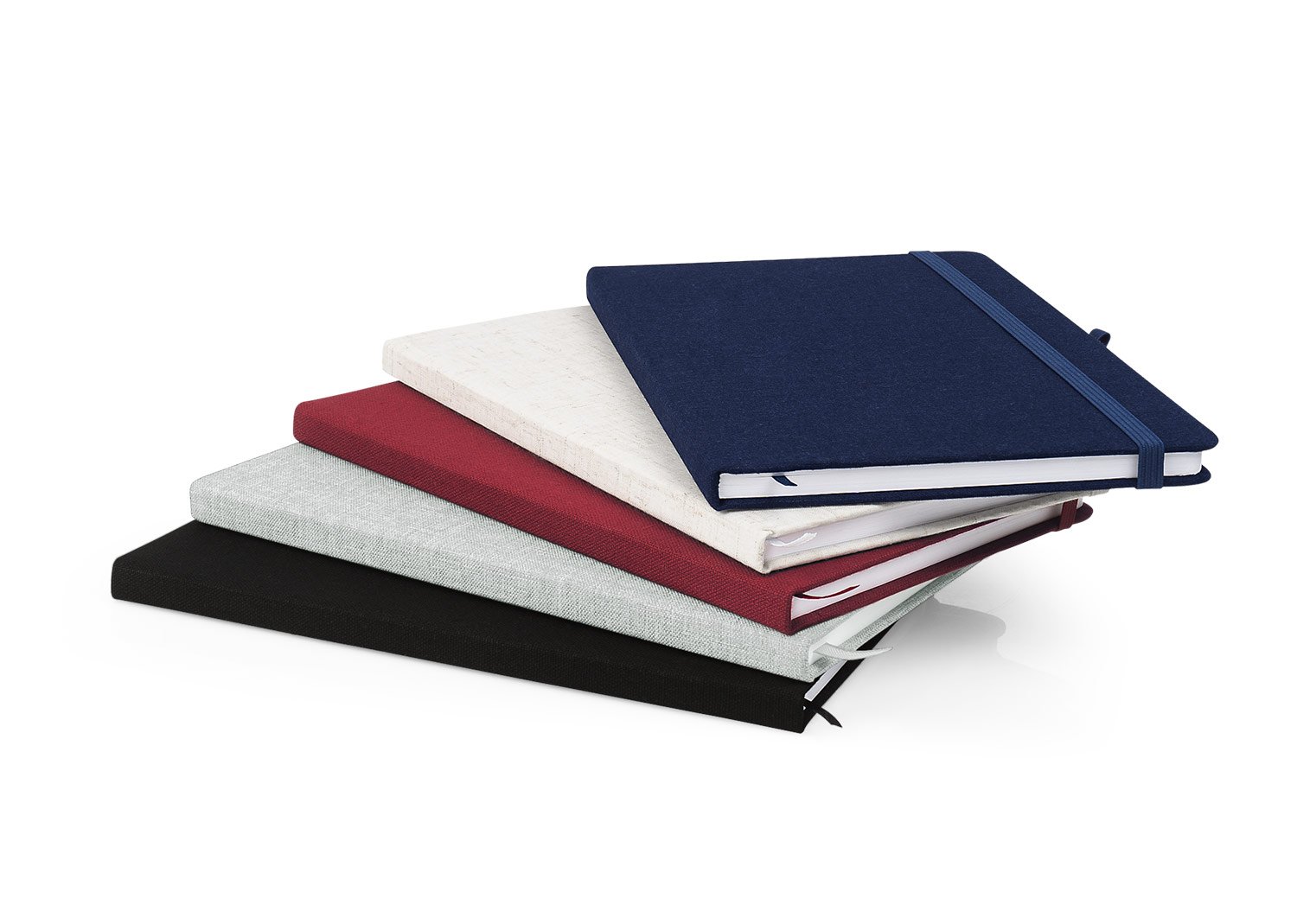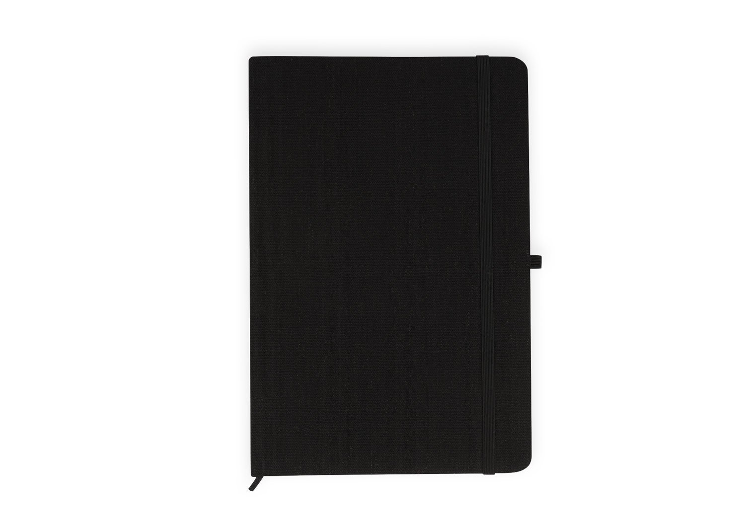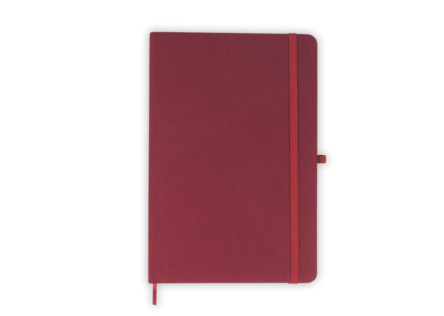 Libreta con cubierta dura forrada en algodón. Con banda elástica de cierre. Contiene 80 hojas rayadas. El tamaño aproximado de la hoja: A5.