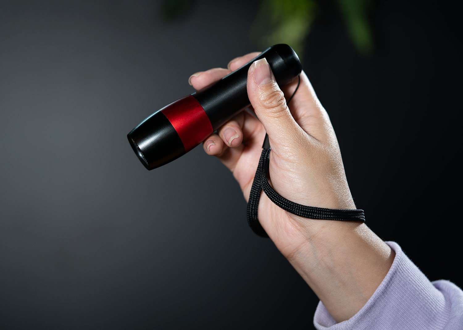 Linterna de aluminio con 9 LEDs. Requiere 3 pilas AAA (no incluidas). Correa negra para transportar fácilmente.