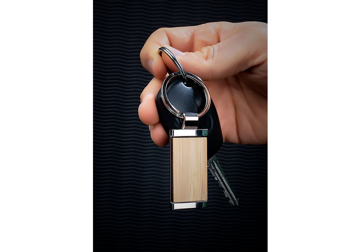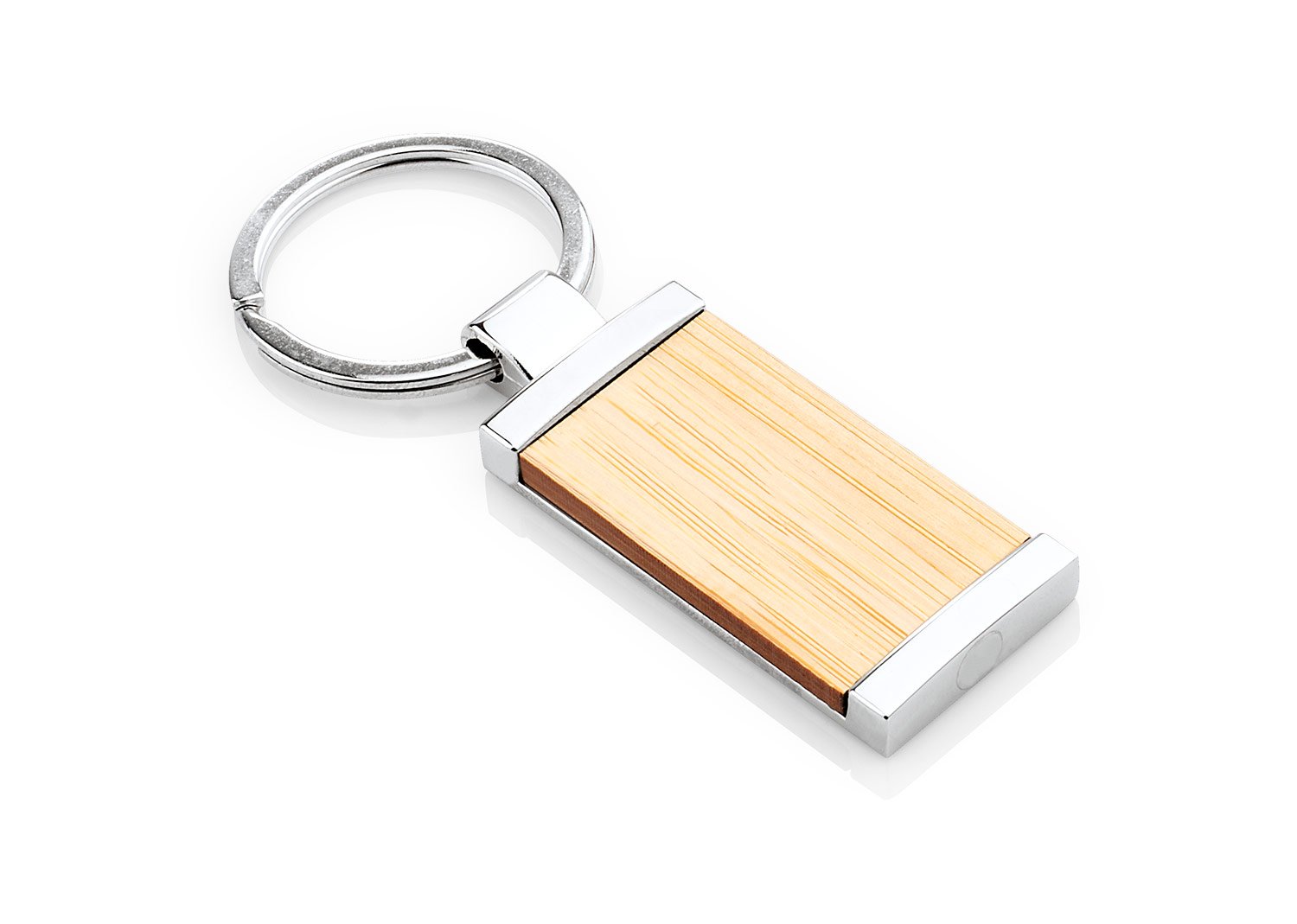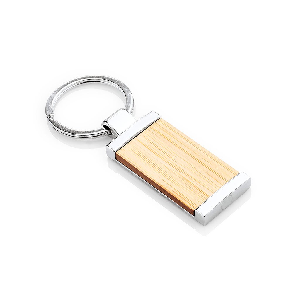 Llavero metálico rectangular con cubierta en Bambú