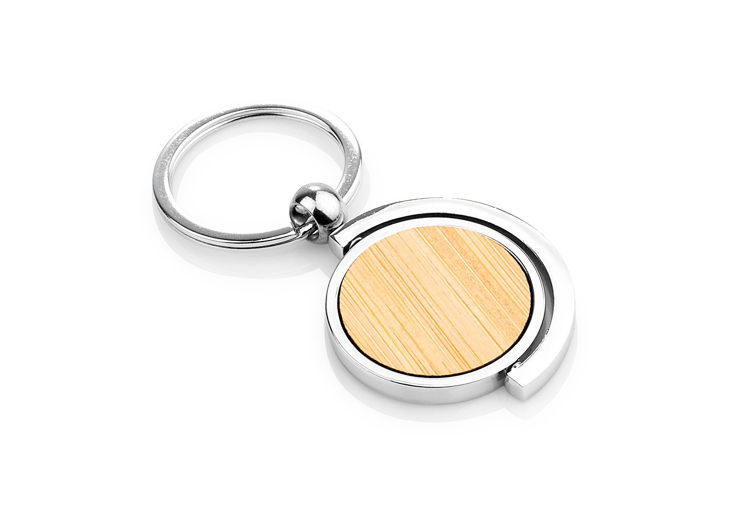 Llavero metálico redondo con cubierta en Bambú