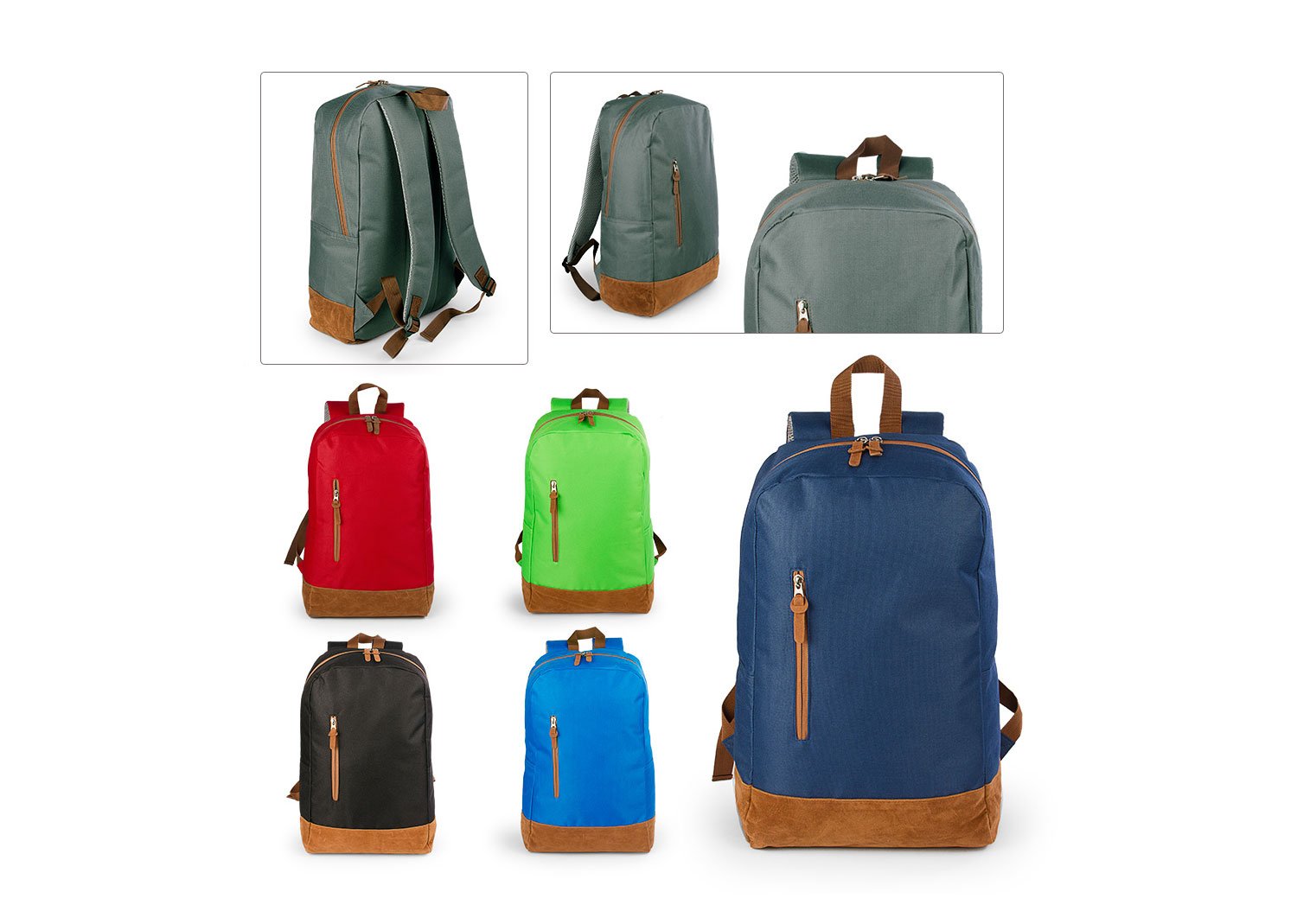 Morral con cargaderas ajustables, Bolsillo principal y frontal con cierre en cremallera refuerzo inferior en gamuza.