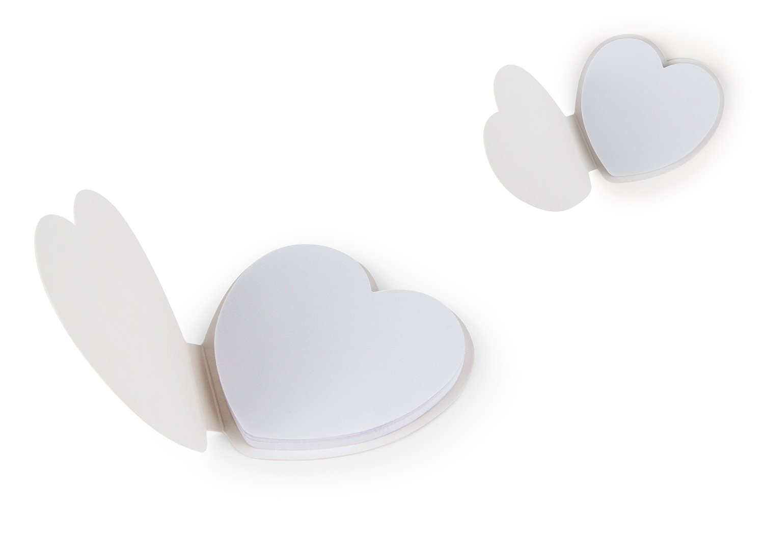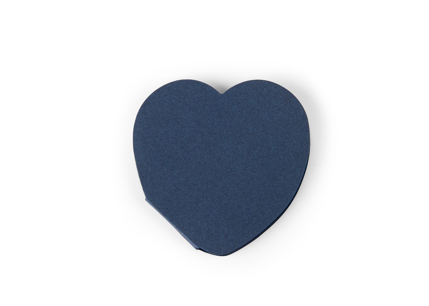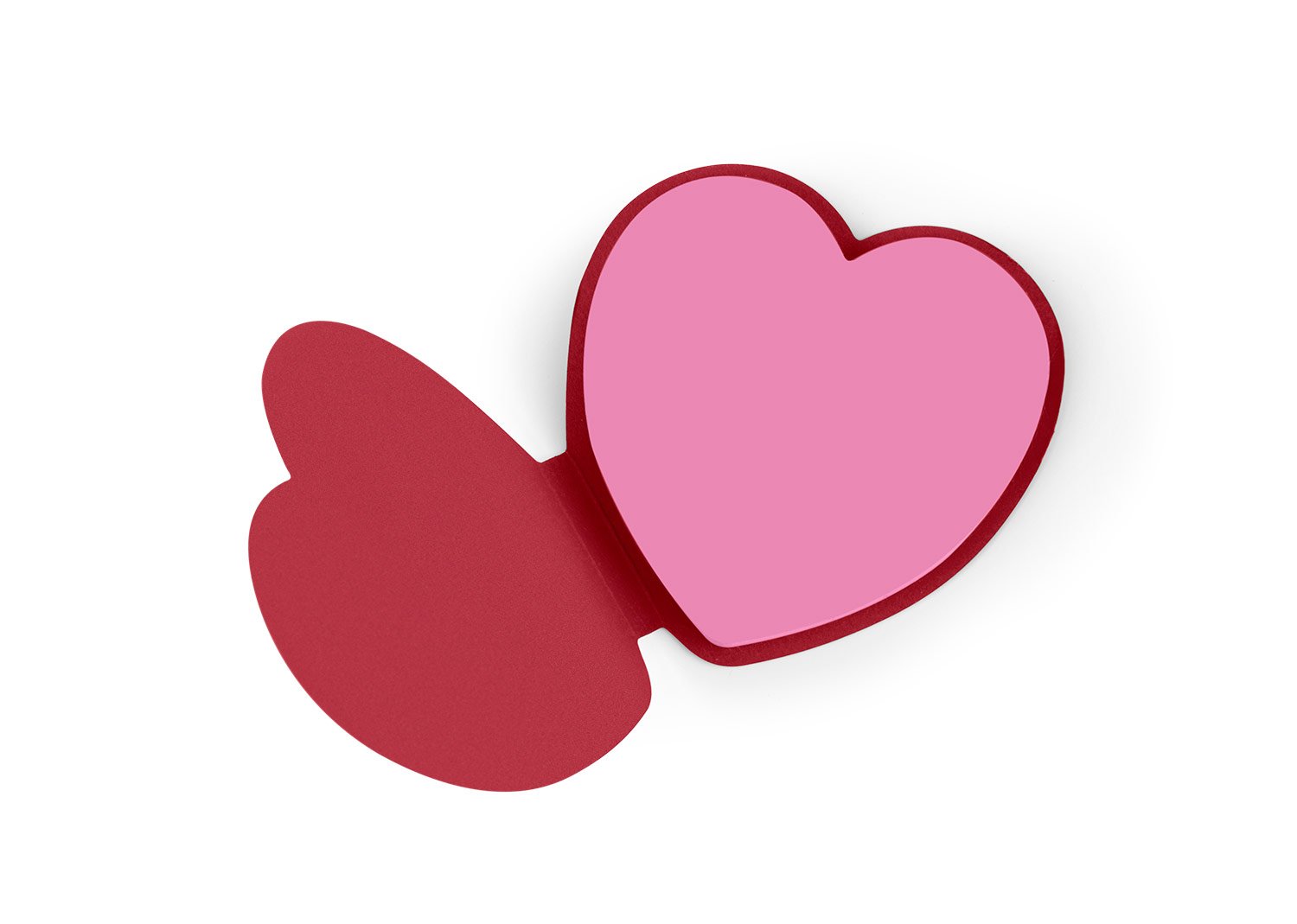 Memo en forma de corazón con 50 notas adhesivas del mismo color de la cubierta.