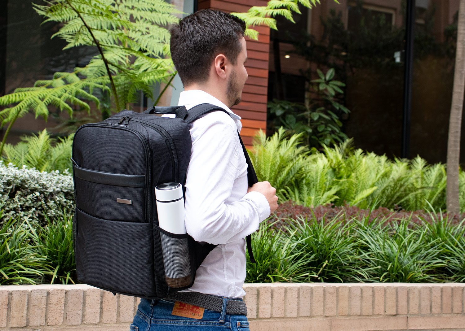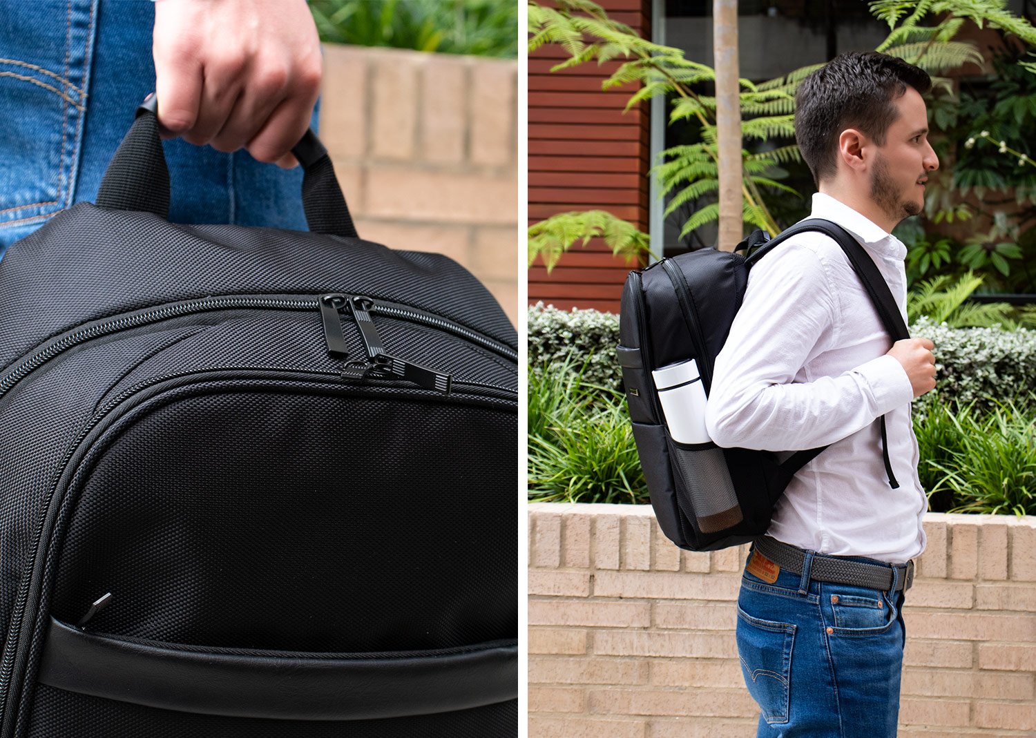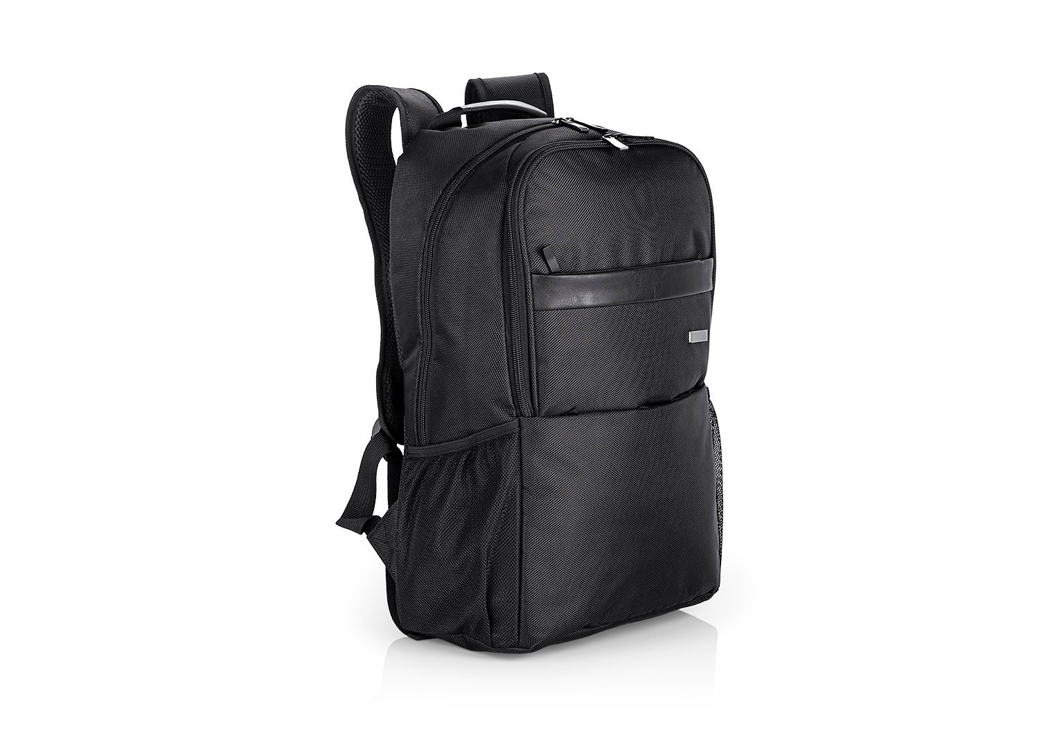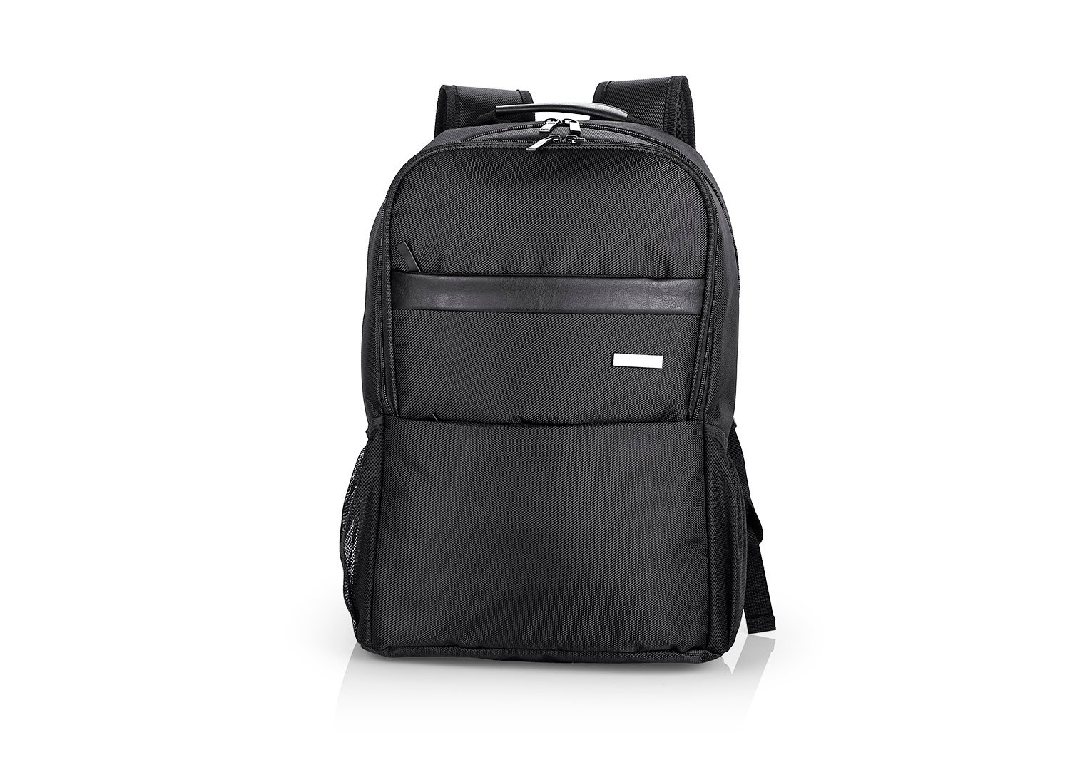 Morral Portalaptop con espaldar ergonomico, con cargaderas ajustables y acolchadas, 2 bolsillos exteriores, 1 bolsillo medio con compartimentos especiales en el interior, el bolsillo principal tiene un compartimiento para dispositivos portatiles de 15″, 2 bolsillos laterales en malla ideales para botellas y cables . correa en la parte trasera para ajustar el morral a un trolley, Incluye placa metálica para marca láser.
