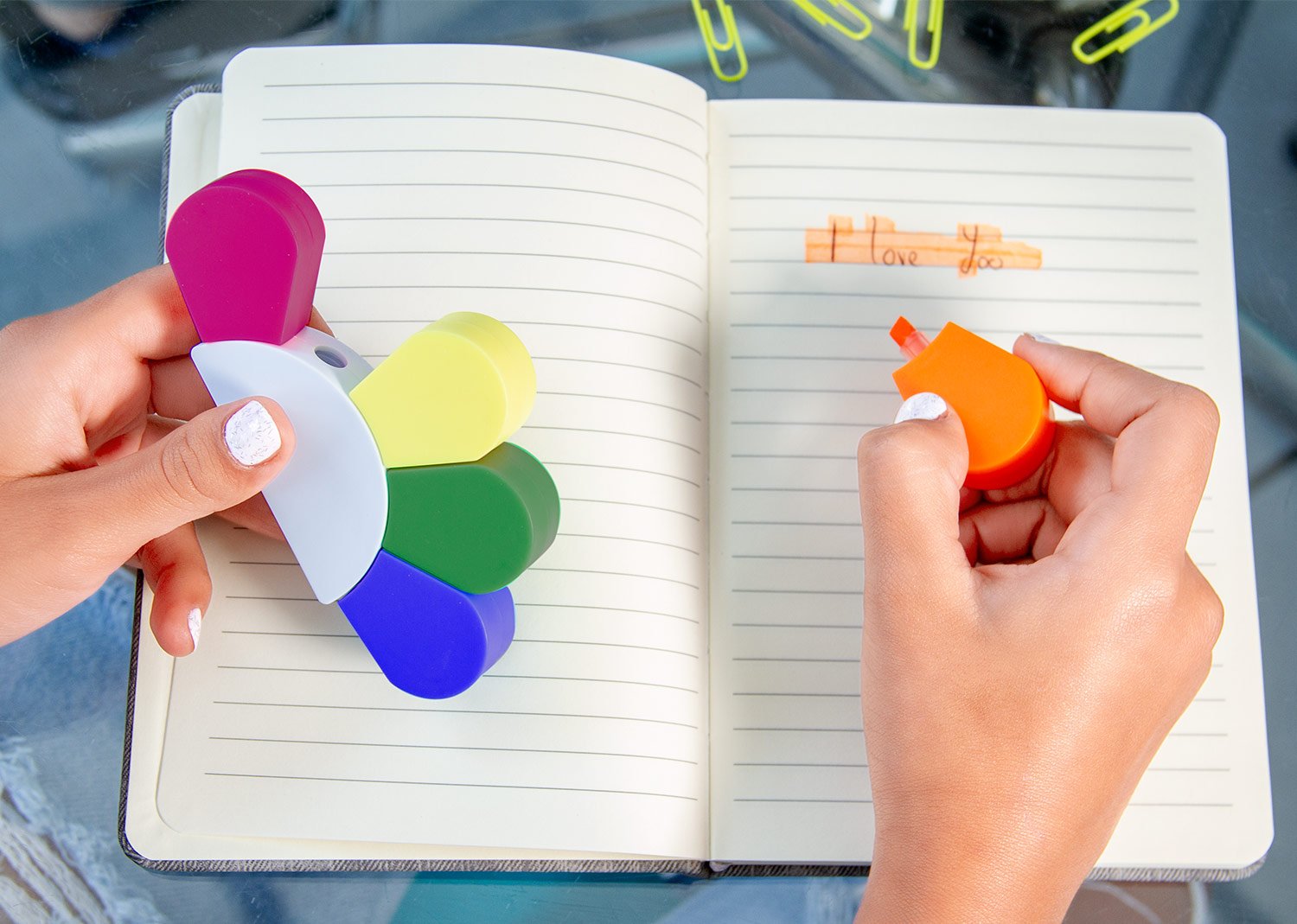 Resaltador tradicional con 5 opciones de color.