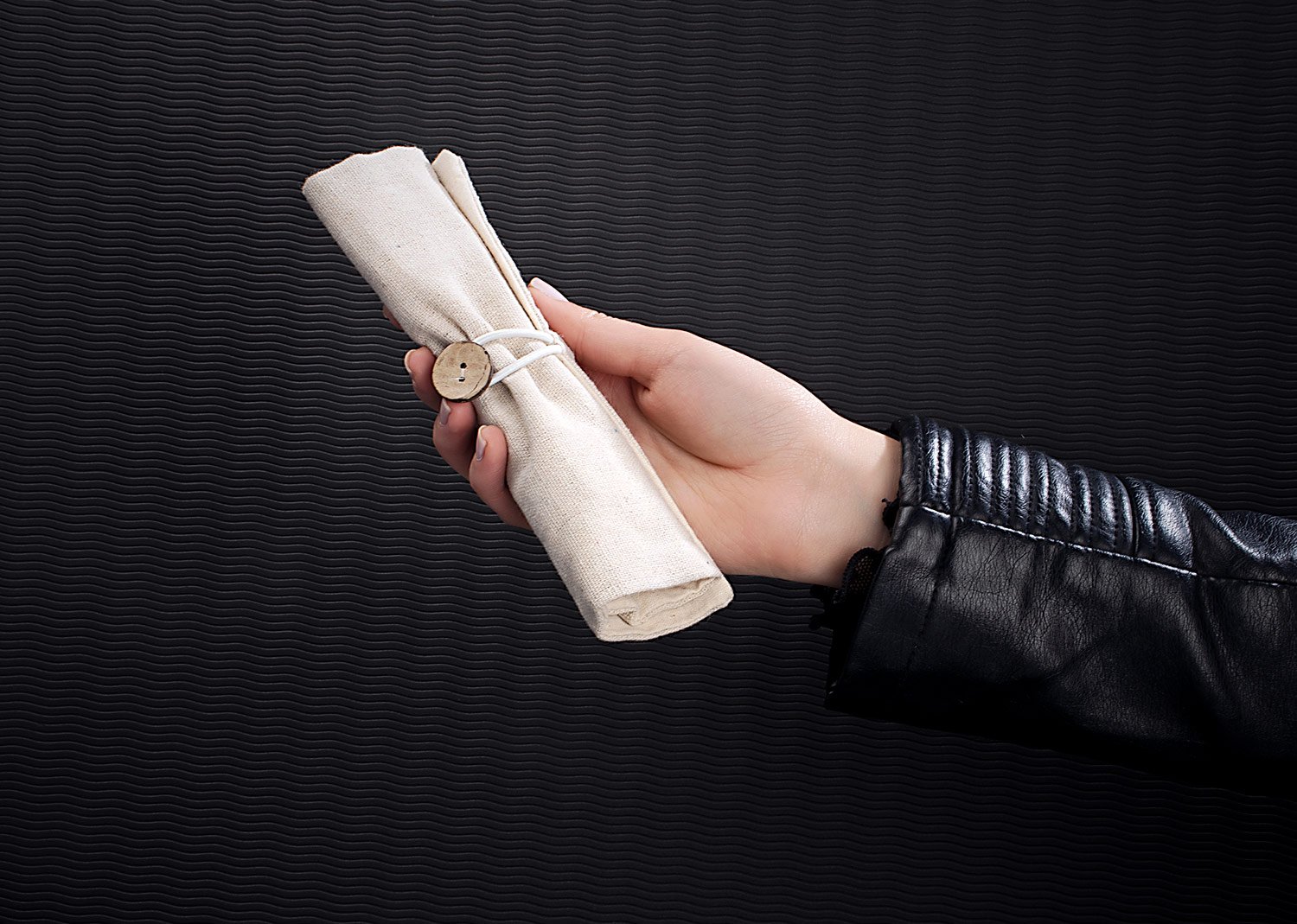 Set de escritorio en estuche de algodon. Incluye bolígrafo con tapa y tinta negra, borrador, lápiz, tajalápiz y regla de 15 cm ó 6 Pulgadas.