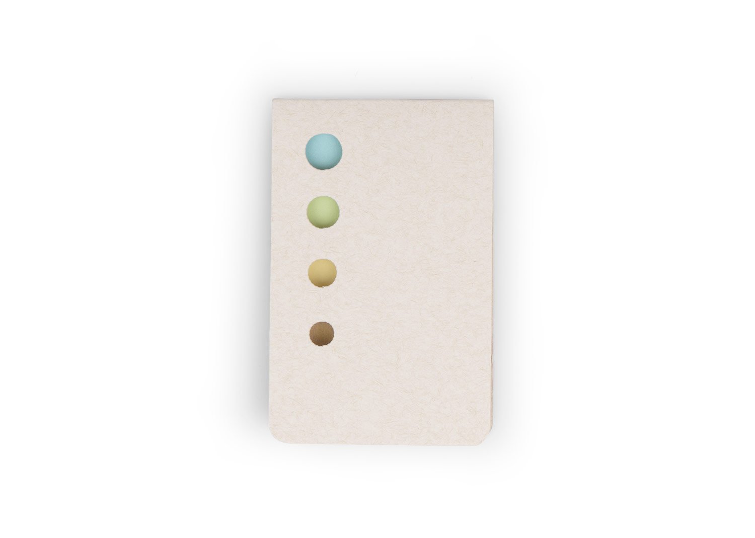 Set de memos con tapa elaborada en material recuperado de cajas Tetra pak. Incluye 10 hojas adhesivas mini y 4 juegos de banderas adhesivas en papel de colores con 30 hojas cada uno. Diseño de troqueles circulares al frente.