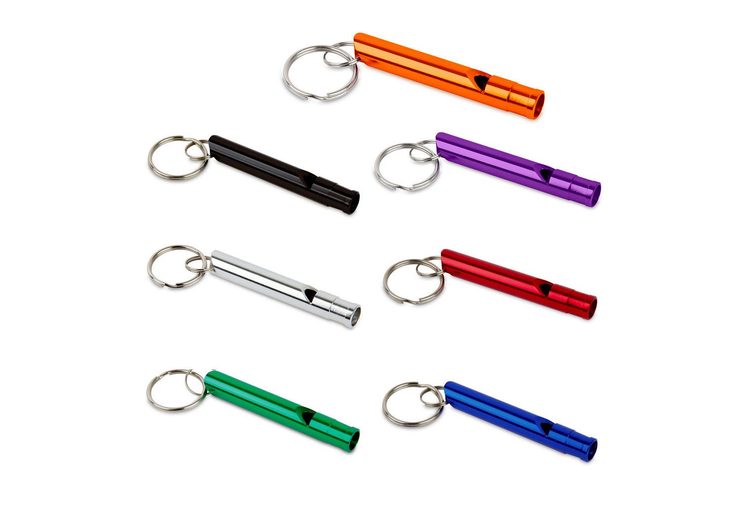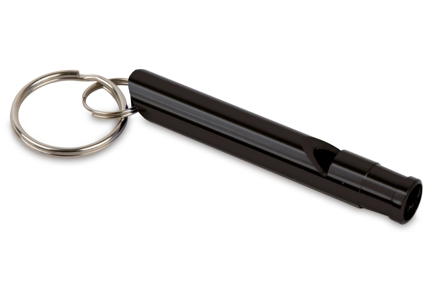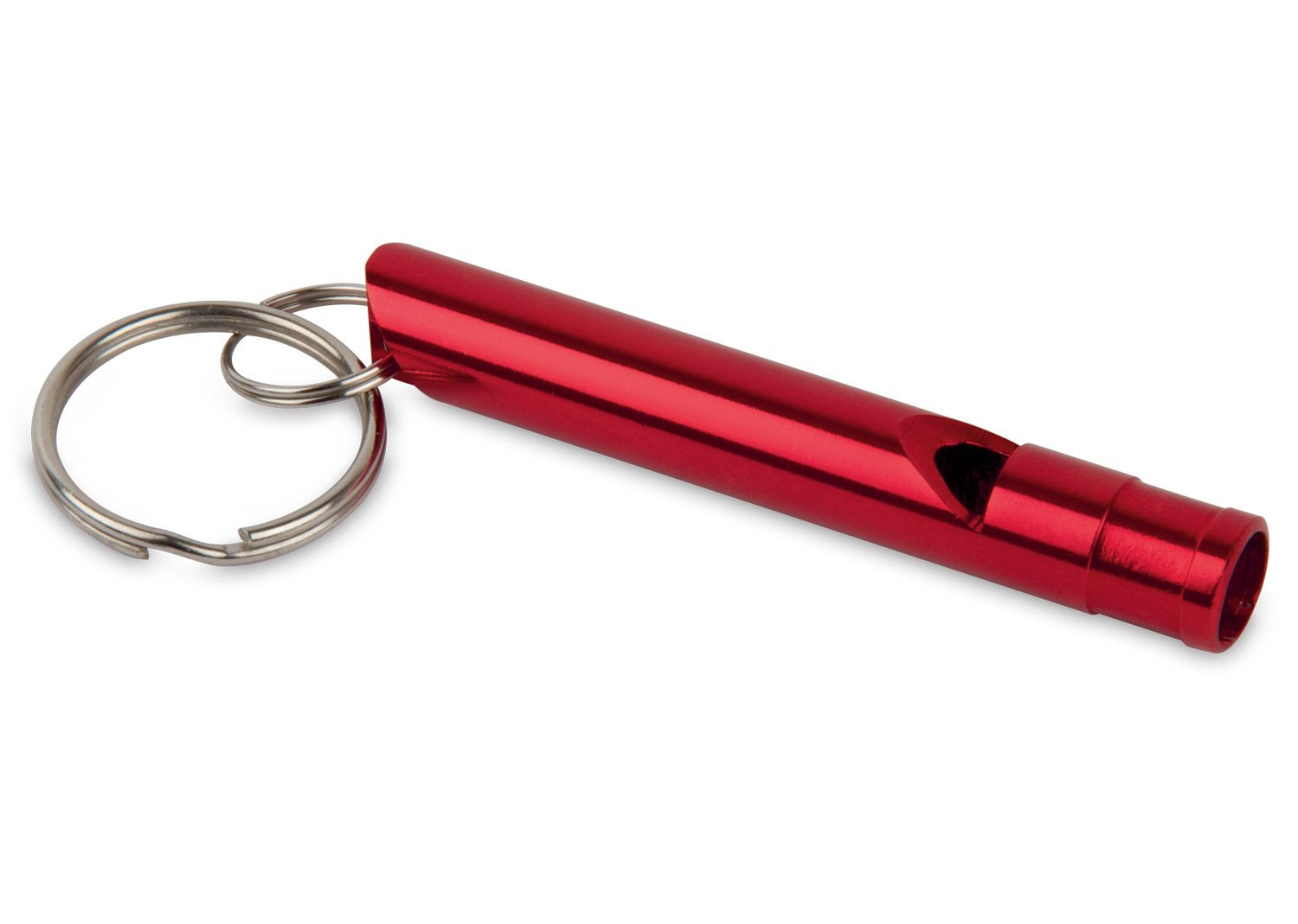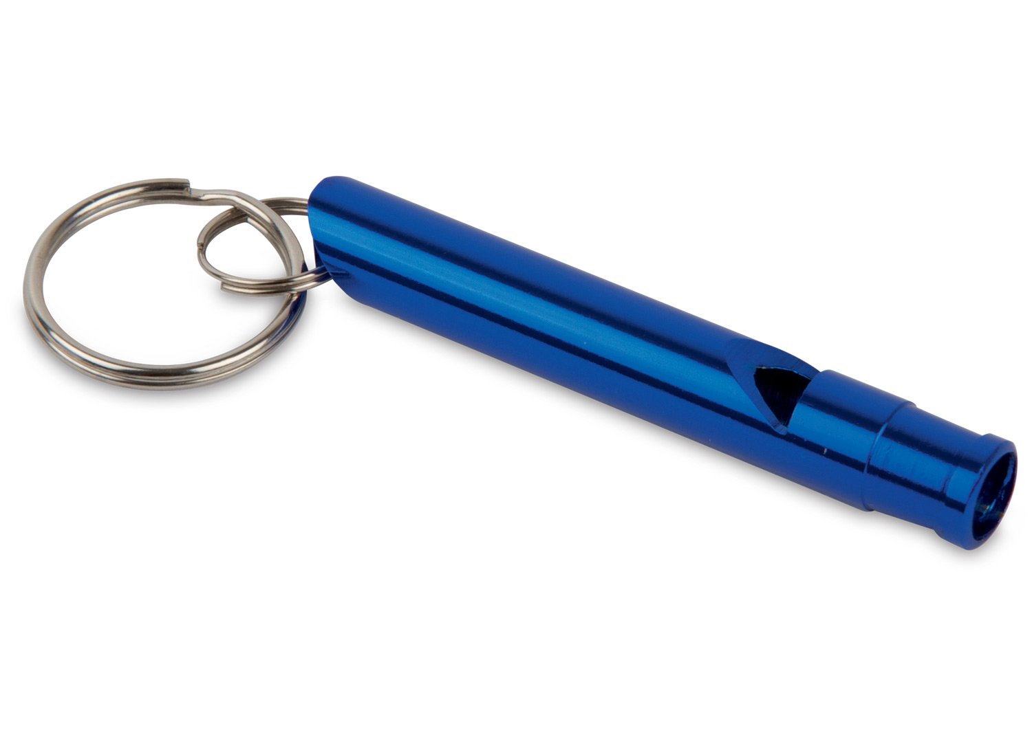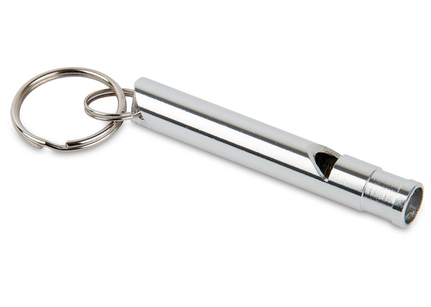 Silbato tubular metálico con argolla para llavero.