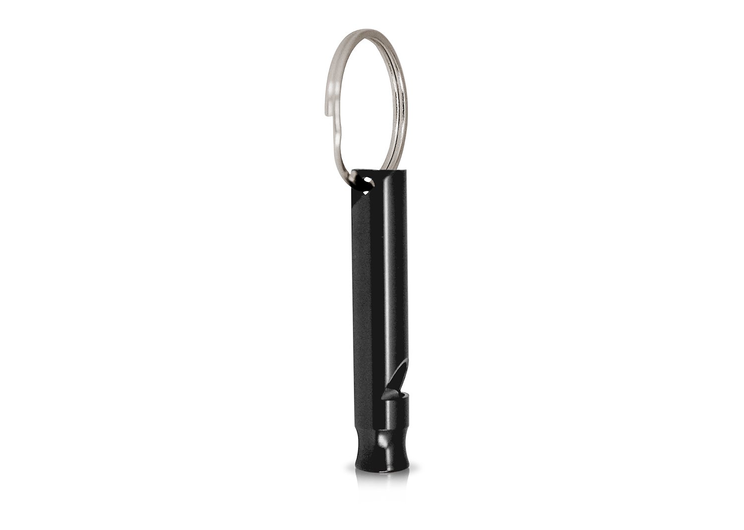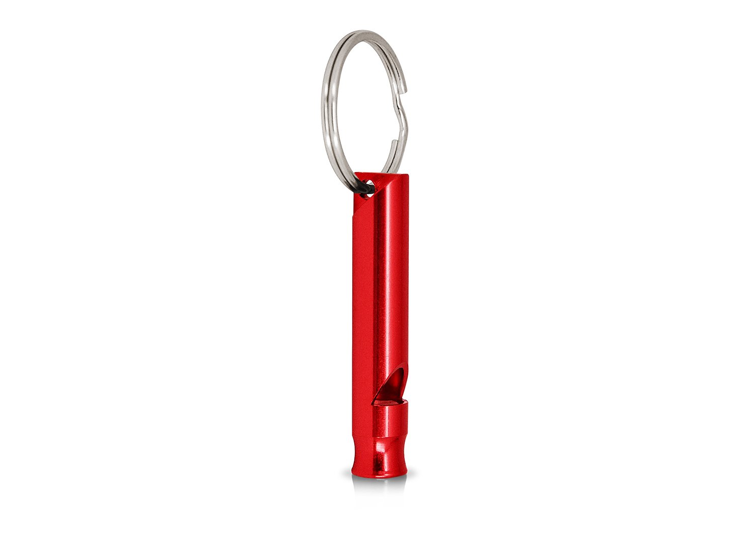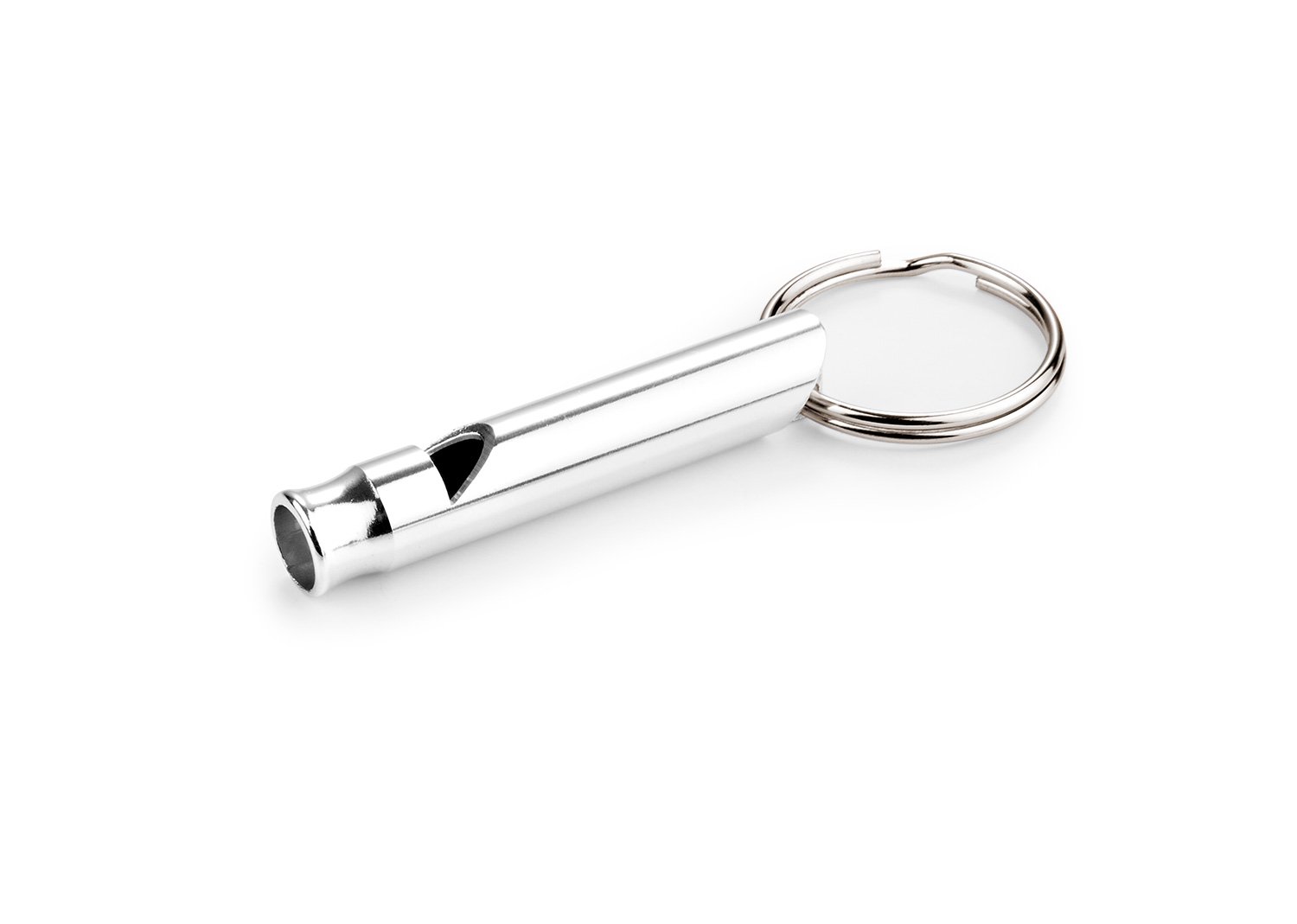 Silbato tubular metálico con argolla para llavero.